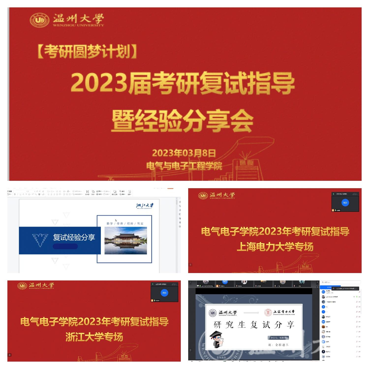 如今,已成功上岸的优秀学子们也接住了来自学校的考研“接力棒”,在复试流程、考核形式、复试要点、导师选择等方面都给予耐心细致的指导,将对母校的爱传递给学弟学妹们。近期,国产口爆已邀请来自温州大学、浙江大学、上海电力大学以及杭州电子科技大学的数十位优秀校友开展复试指导和经验分享会。受益同学近百人次。