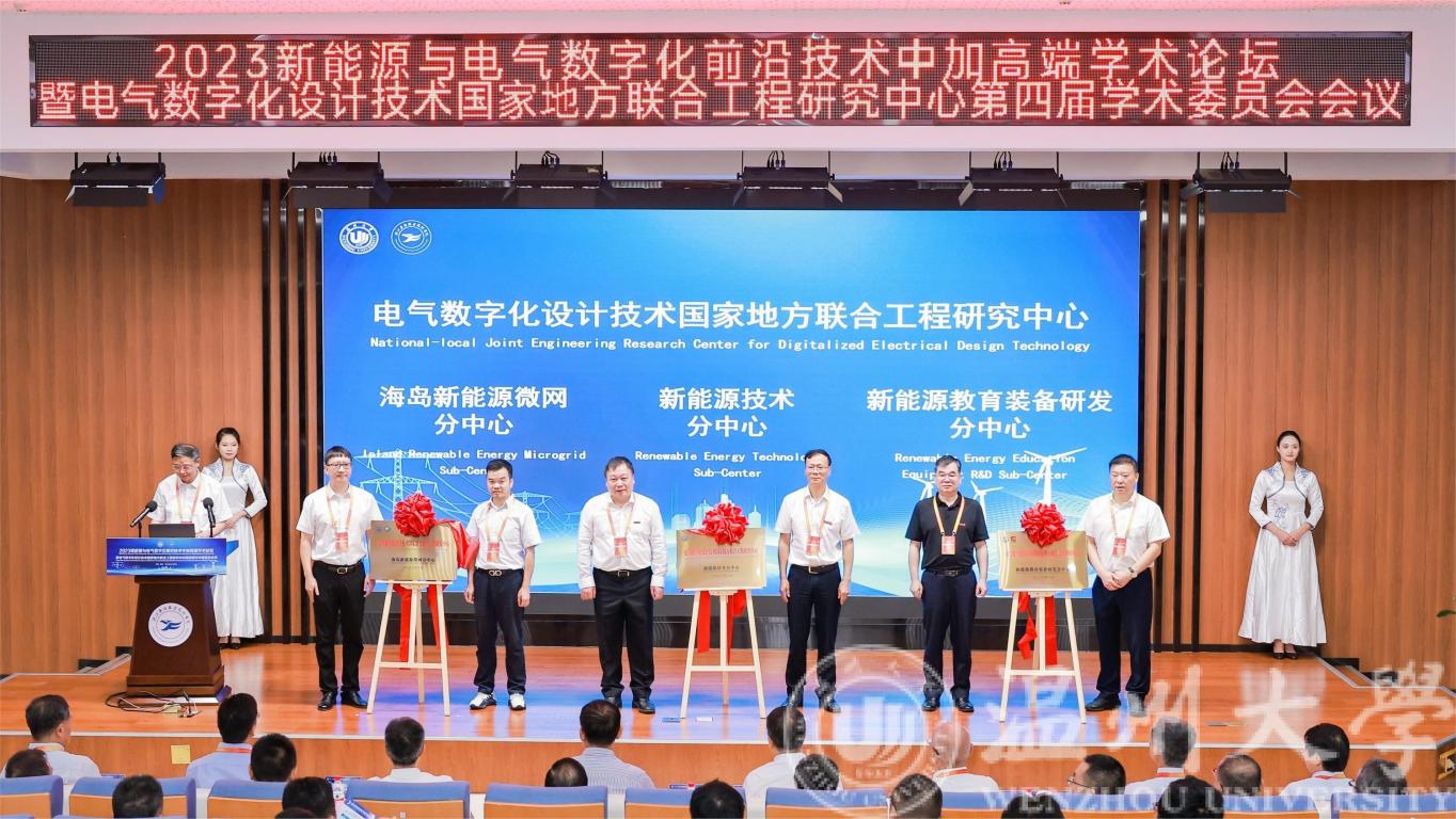 会议上宣布了电气数字化设计技术国家地方联合工程研究中心第四届学术委员会名单,还为电气数字化设计技术国家地方联合工程研究中心和落户在安防国产口爆的新能源技术分中心、落户在国网平阳中心的海岛新能源微网分中心、落户在亚龙智能装备集团股份有限公司的新能源教育装备研发分中心等三个分中心揭牌。当天,由安防国产口爆、温州大学联合新能源龙头企业创设的新能源行业产教融合共同体举行了启动仪式。