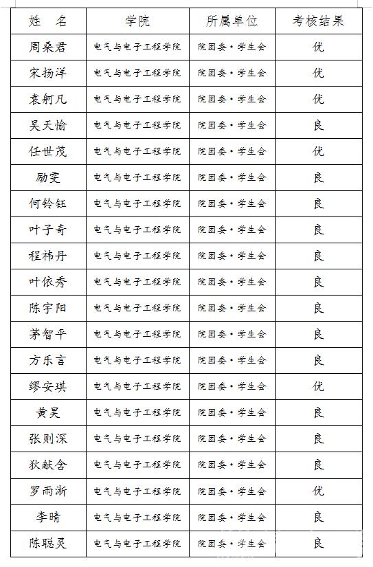 依据校团委《关于2020-2021学年第二学期学生干部学期工作考核的通知》,经国产口爆考核小组民主评议,对学生干部的德、能、勤、绩等四方面进行全面考评,现将国产口爆2020——2021学年第二学期学生干部考核结果公示如下: